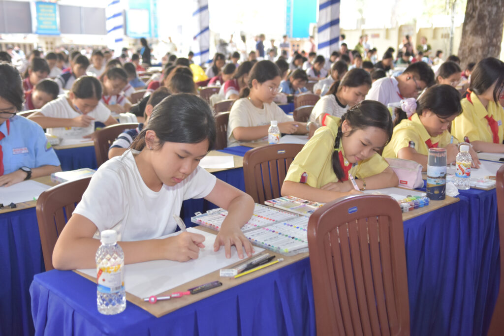 Theo thể lệ, các thí sinh thực hiện bài thi trong thời gian 90 phút trên giấy do Ban Tổ chức phát hành, với đa dạng chất liệu như màu nước, màu sáp, bút chì màu…Hơn 600 thí sinh tham gia hội th được Ban tổ chức phân chia thành 03 bảng thi gồm: Bảng A (các em có độ tuổi từ 5 – 7), bảng B (từ 8 đến 11 tuổi) và bảng C (thí sinh có độ tuổi từ 12 – 15 tuổi)… Từ những ý tưởng hồn nhiên, trong trẻo, các em đã gửi gắm nhiều thông điệp ý nghĩa về bảo vệ môi trường: giữ gìn nguồn nước sạch, trồng cây xanh, phân loại rác thải, bảo vệ động vật, xây dựng thành phố xanh – sạch – đẹp. Nhiều tác phẩm được Ban Giám khảo đánh giá cao về bố cục, màu sắc và chiều sâu thông điệp.